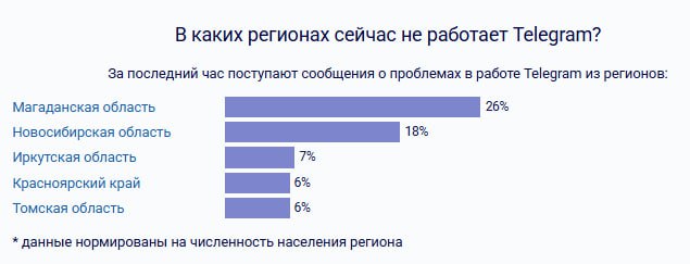 На сбой в работе «Телеграма» жалуются жители Сибири и Дальнего Востока