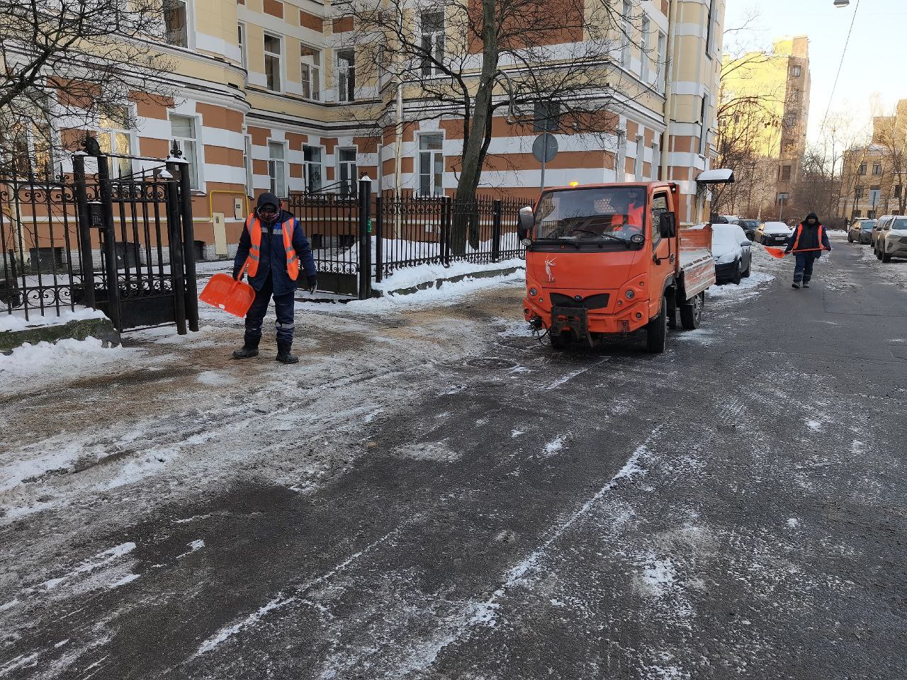 Градозащитник Ярослав Костров сообщил, что вчера видел, как сотрудники городских служб высыпают «целые головы соли» на асфальт в Мариинском проезде.