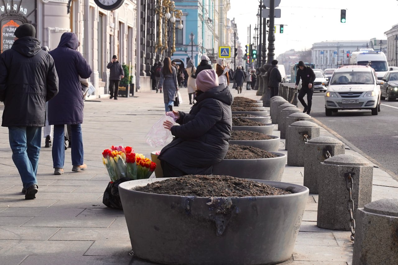 Тюльпаны продают на Невском. На Петроградке уже задерживают за мимозы