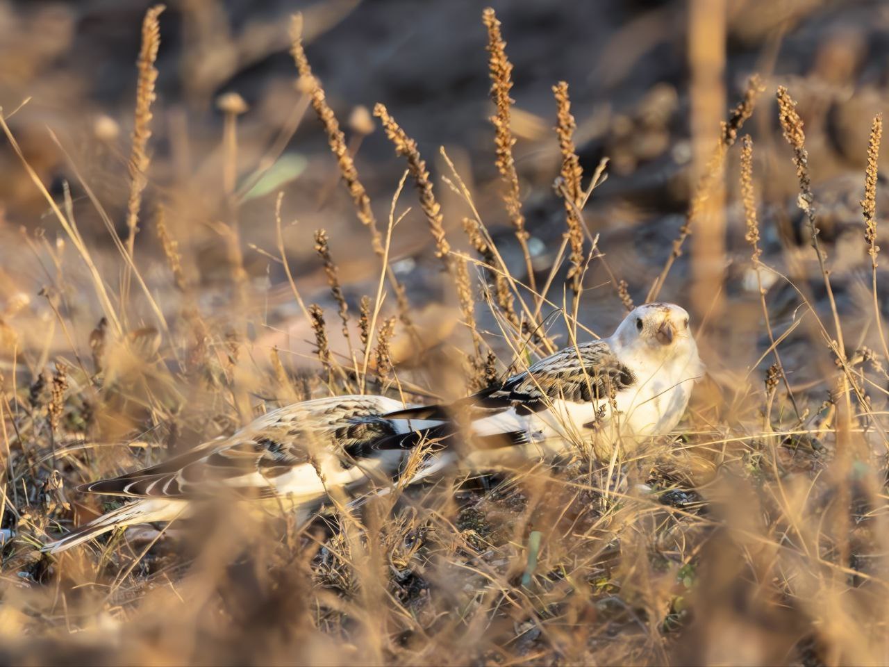 Пуночки гнездятся в Арктике и пролетают Петербург дважды в год, весной и осенью. Птицы делают стоянки на сырых открытых пространствах — лугах, полях, берегах Финского залива и Ладожского озера. Фотография была сделана одном из пустырей Васильевского острова.