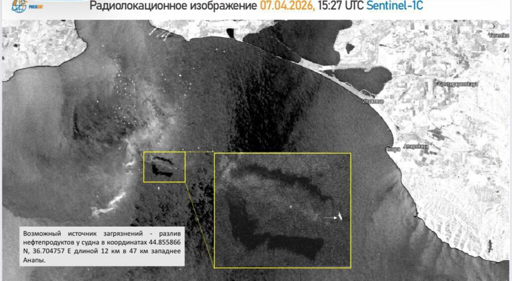 По мнению экологов из «Прозрачного мира», речь идёт не о небольшом локальном пятне, а о разливе очень крупного масштаба. По спутниковым данным, 12 апреля площадь загрязнения превышала 100 кв. км, оценка по периметру доходила до 117 кв. км, а вытянутая полоса растянулась на 43–44 км. Сейчас пятно уже дошло до побережья Витязевской косы.